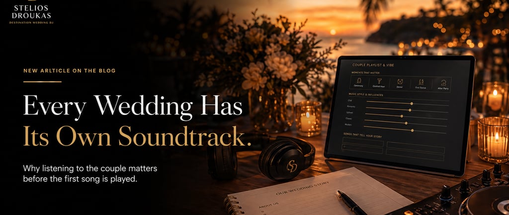 It allows me to understand not only what the couple likes, but how the wedding should flow: ceremony, cocktail, dinner, first dance, party, family moments, cultural music, international guests, late-night energy. This is where the music stops being a list and becomes a plan.